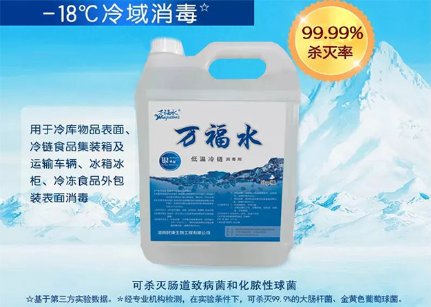 冷鏈食品檢測新冠病毒陽性屢見報端,讓人民意識到在冷鏈食品生產運輸中整個防控體系中,消毒殺菌環節是必不可少的。“萬福水低溫冷鏈消毒劑”完全勝任食品生產、包裝、貯運各個環節的消毒工作。冷鏈食品行業防控必要...